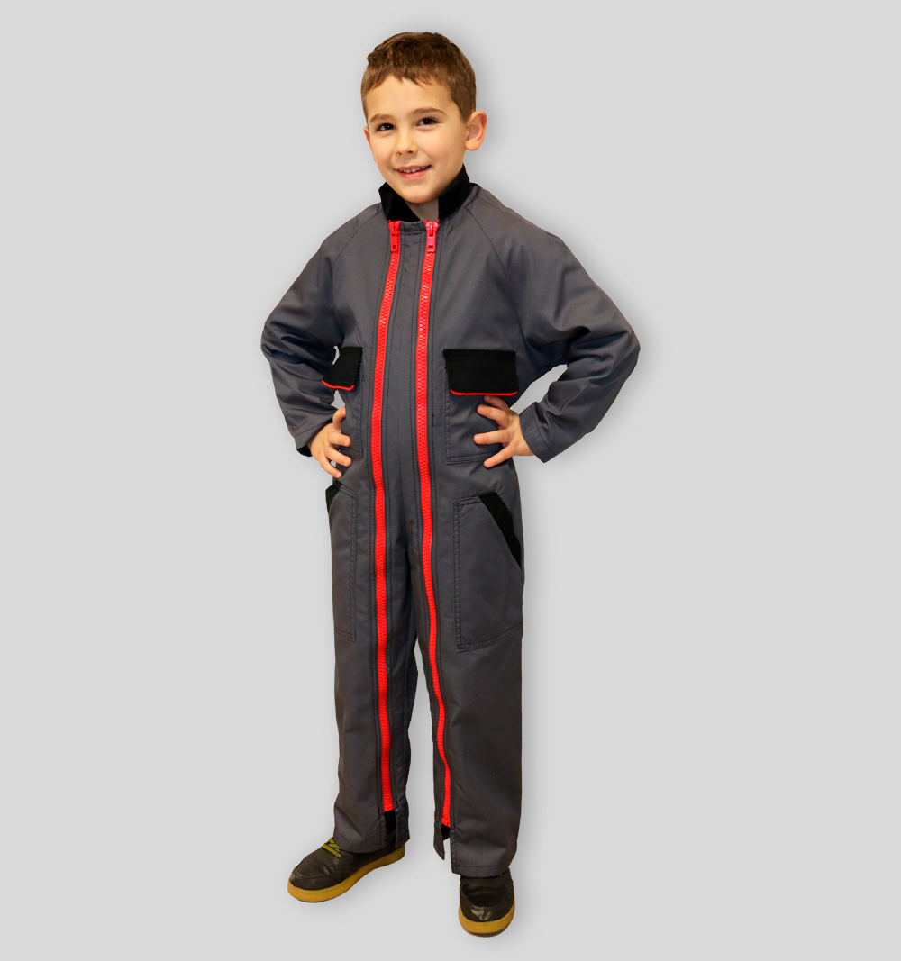 La Combinaison 2 fermetures est idéale pour les enfants. Elle s’enfile rapidement, protège des salissures et reste Confortable.