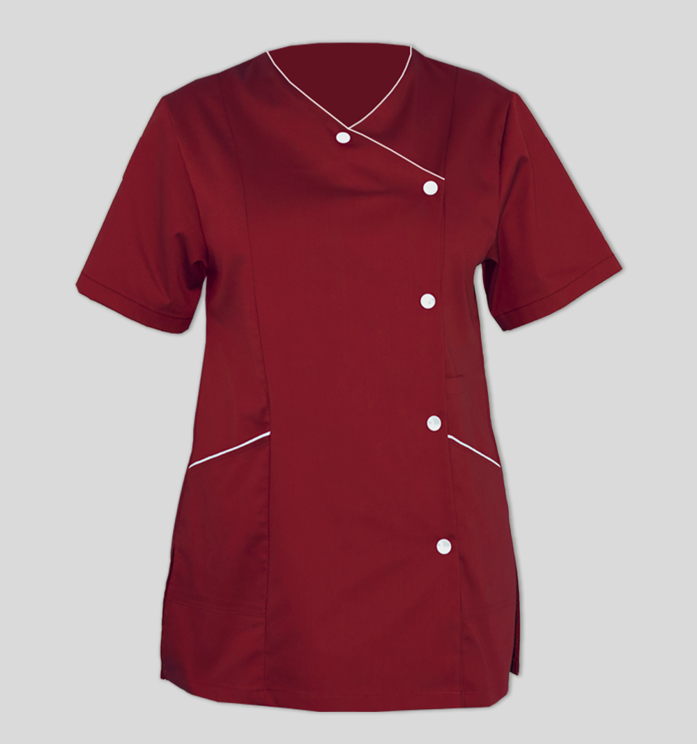La Tunique Hestia se décline en 3 variantes coloristiques : Gris/turquoise, bordeaux/blanc et marine/blanc. Elle s’accorde facilement avec nos pantalons de la gamme Esthétique et Santé.