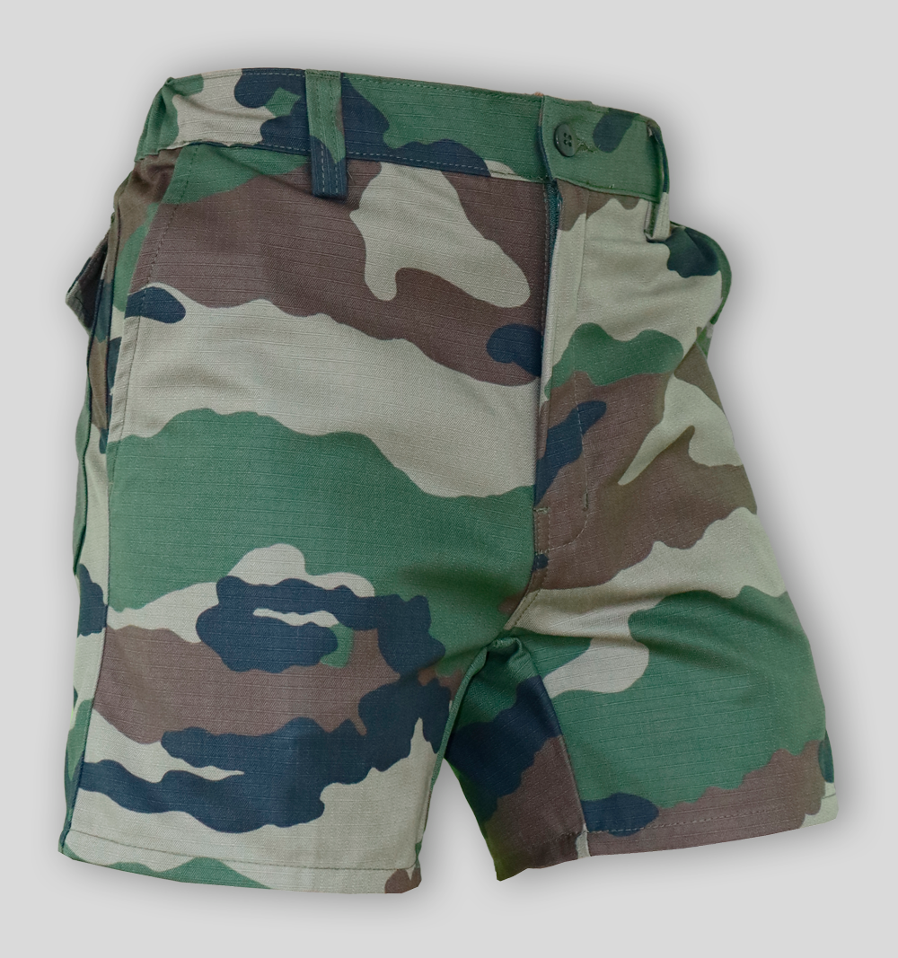 Le Short Militaire existe en 2 coloris : Camouflage Centre Europe (CCE) ou kaki. Il se porte facilement avec tous les hauts de notre gamme Militaire.