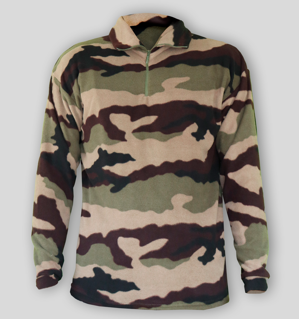 La Chemise polaire F1 existe en 4 coloris : camouflage, marine, noir et kaki. Pour une tenue contre le froid, cette chemise peut être associer avec le pantalon hiver (réf. P125).